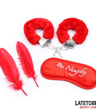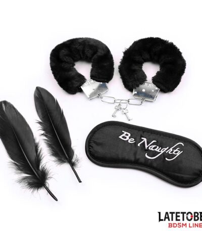 3 Pieces Bondage Set Cuffs, Eye Mask and Feathers